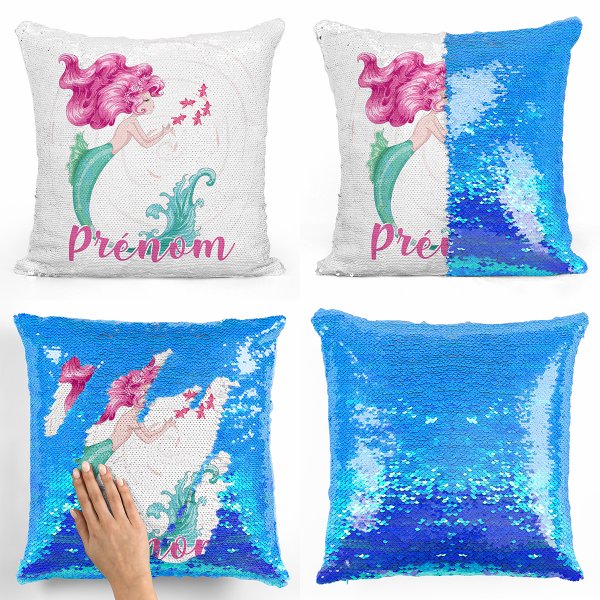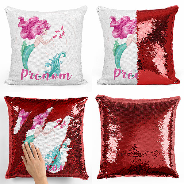 Créez en 2 secondes votre Coussin sequin magique à paillettes avec motif Sirène en le personnalisant avec le prénom de votre enfant !